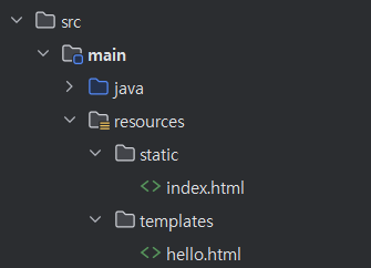 src > main > resources 경로로 들어가면 static, templates 폴더가 존재한다.