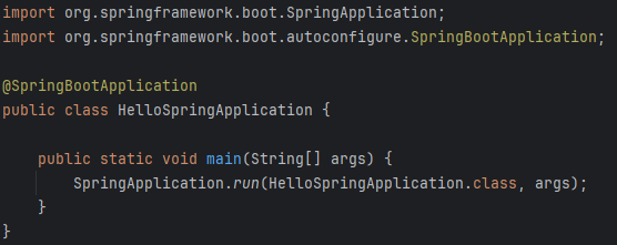 SpringApplication.run(HelloSpringApplication.class, args);