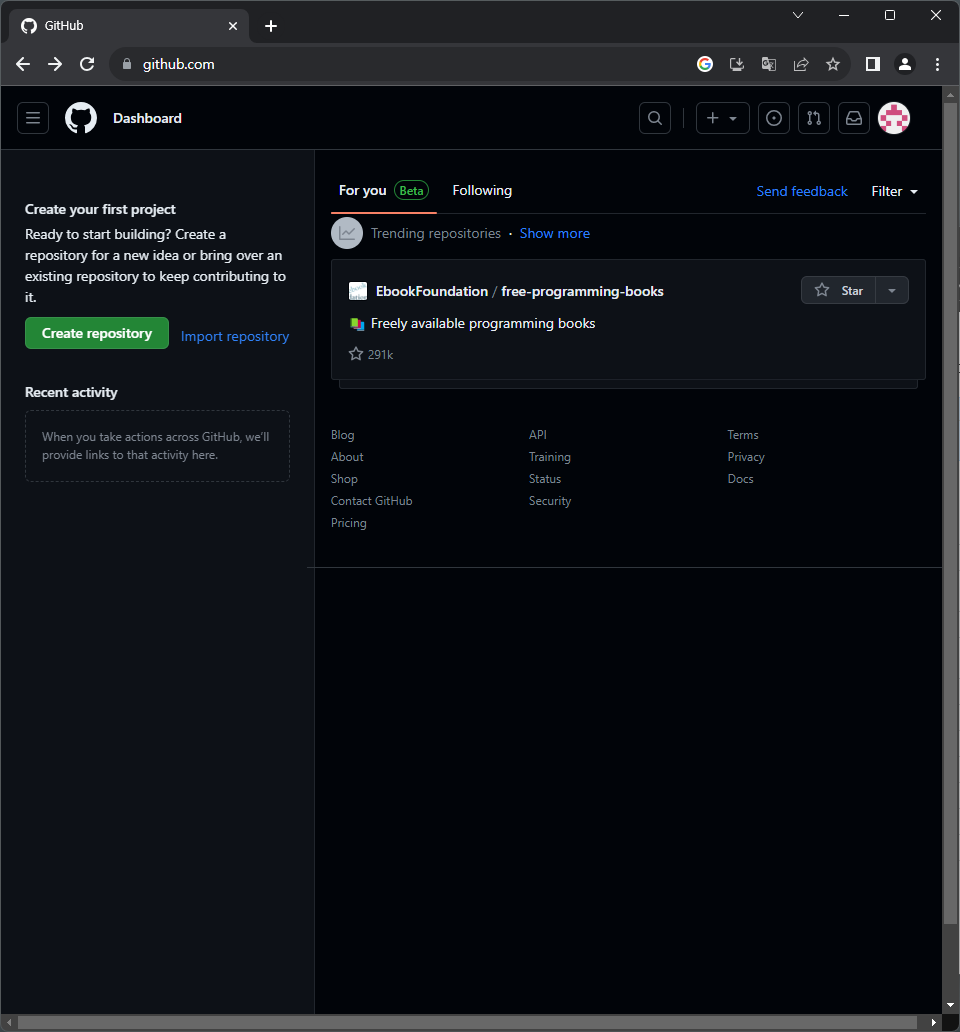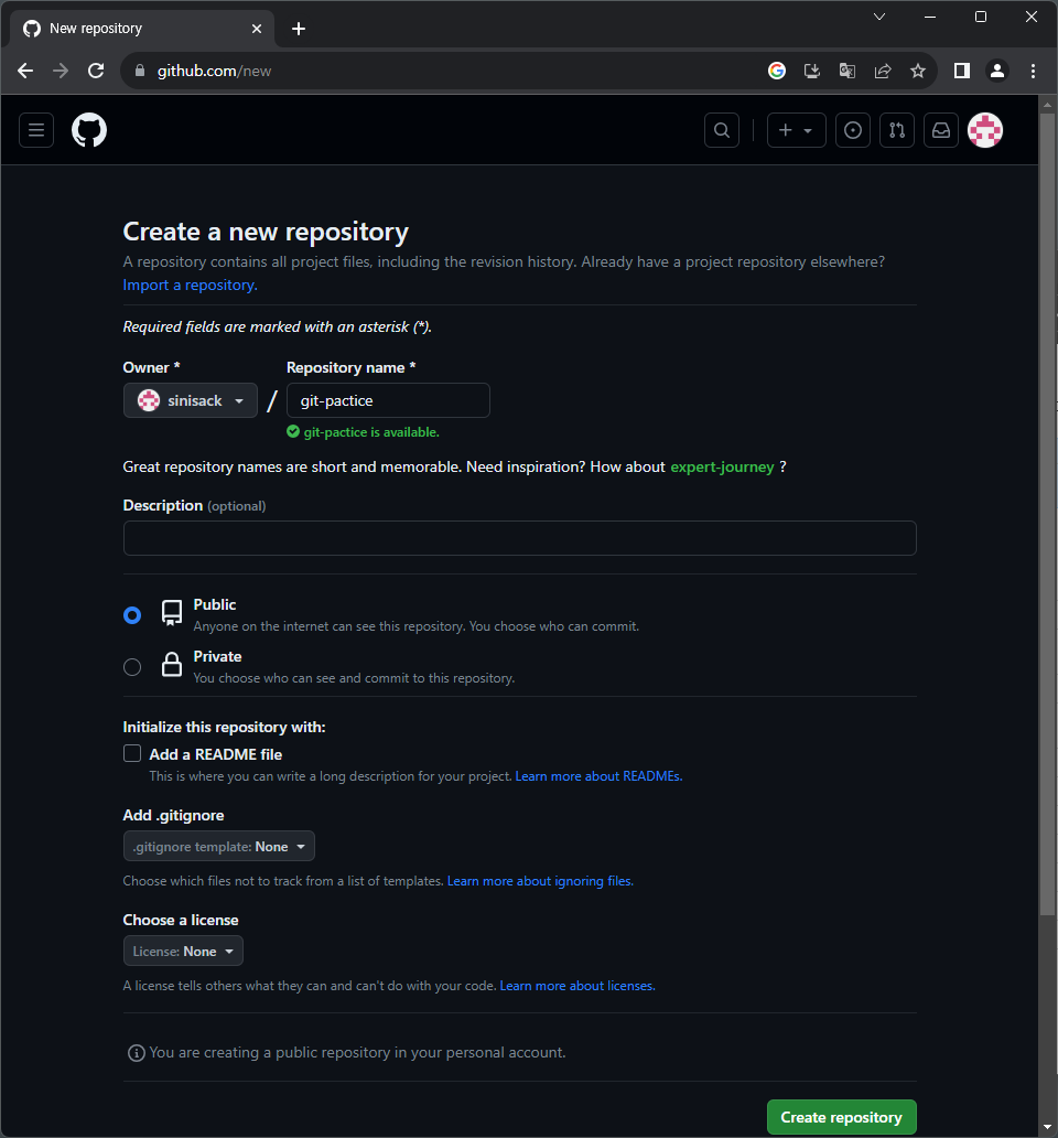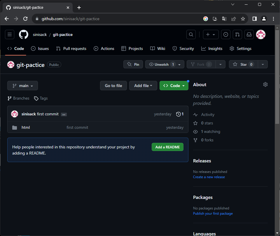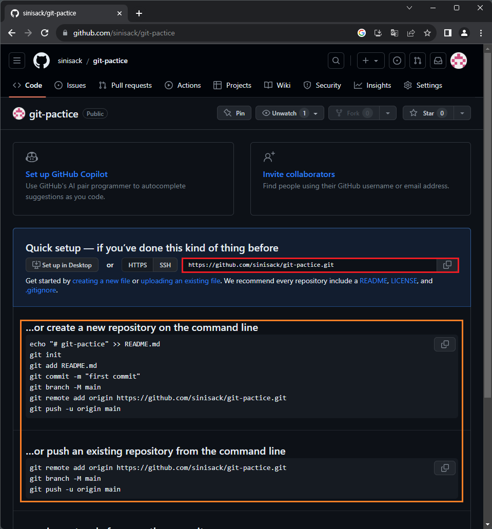 마지막으로 Create repository를 누르면 저장소가 생성됩니다.