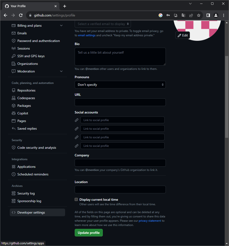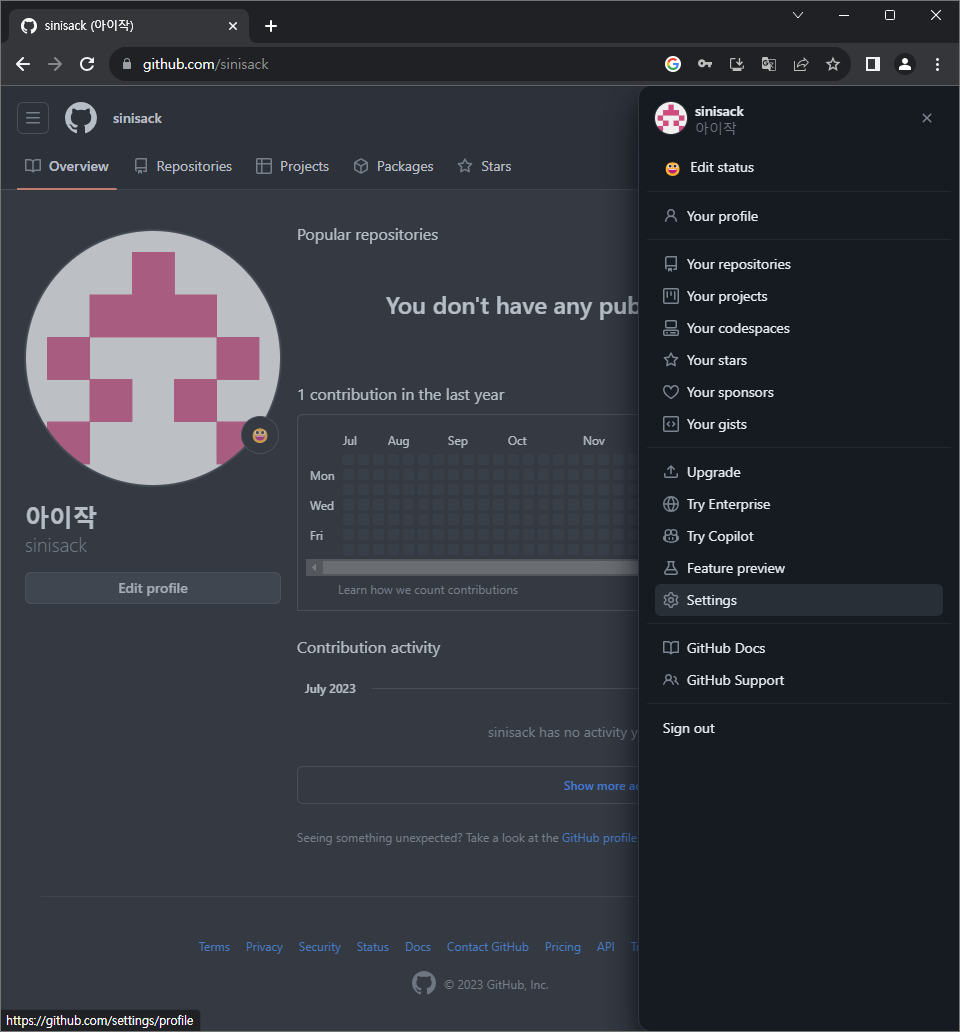 GitHub 사이트 접속 ▶ 우측 상단에 있는 프로필을 클릭