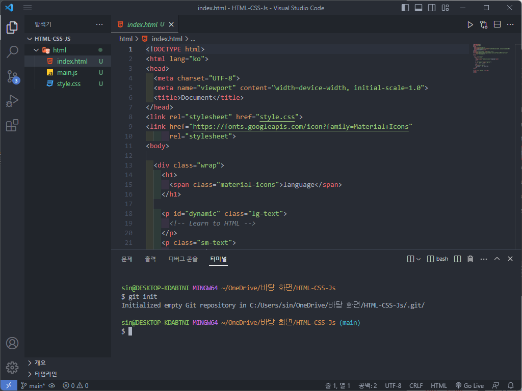 visualstudio를 열어 Ctrl + Shift + ` 로 터미널 열어보기